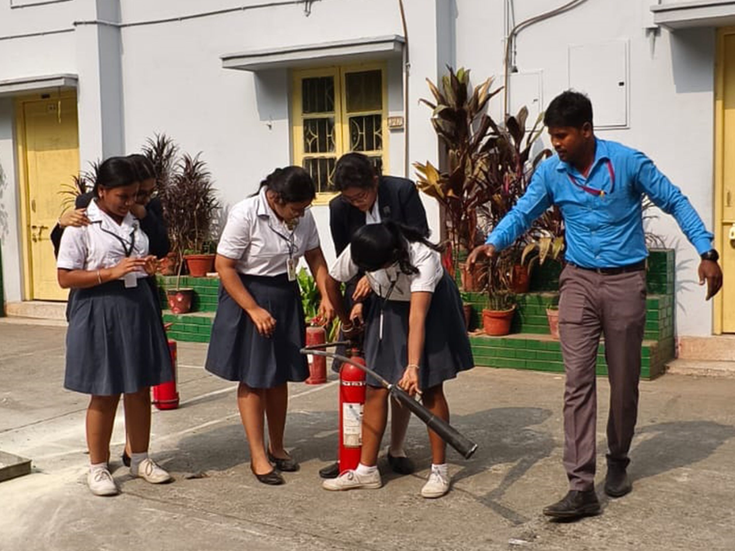 - Fire Extinguishers and essential Fire Hydrants are placed in school at various locations and maintained regularly.